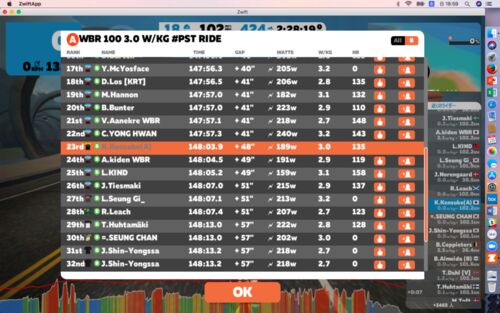 ちゃんと、 3.0 w/kg で走りきりましたよー 今日は、午後から WBR 100 3.0 w/kg #pst にエントリー タイトル通り、3.0 w/kg ペースで走るのが狙い。 リーダーがいるグループライドなので、ペースが乱れてグループがバラけそうになるとリーダーがいろいろ指示…